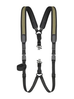 Divdaļīga, polsterēta ieroča siksna, kas izgatavota no neoprēna. Ļauj ērti nēsāt ieroci uz muguras, līdzīgi kā mugursomu. Gumijota, neslīdoša virsma.